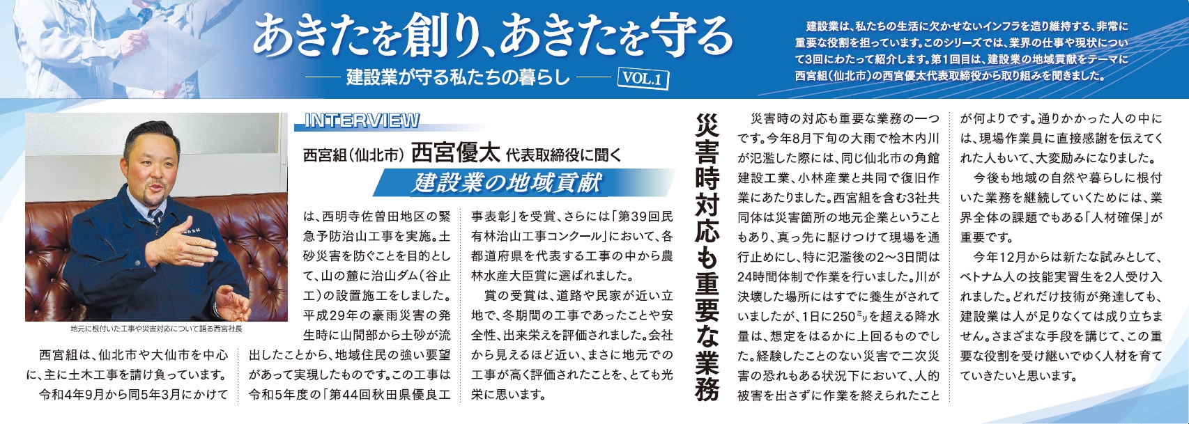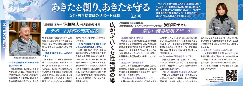 HOME > 記事・動画 > 建設業の魅力を紹介するシリーズ「あきたを創り、あきたを守る」(全3回)